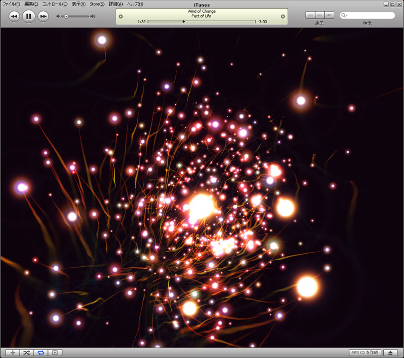 なんかねー、下のビジュアライザのエントリに、そのお気に入りのヤツの画面を載せたんだけど、縮小画像がめさめさ汚いのよー。